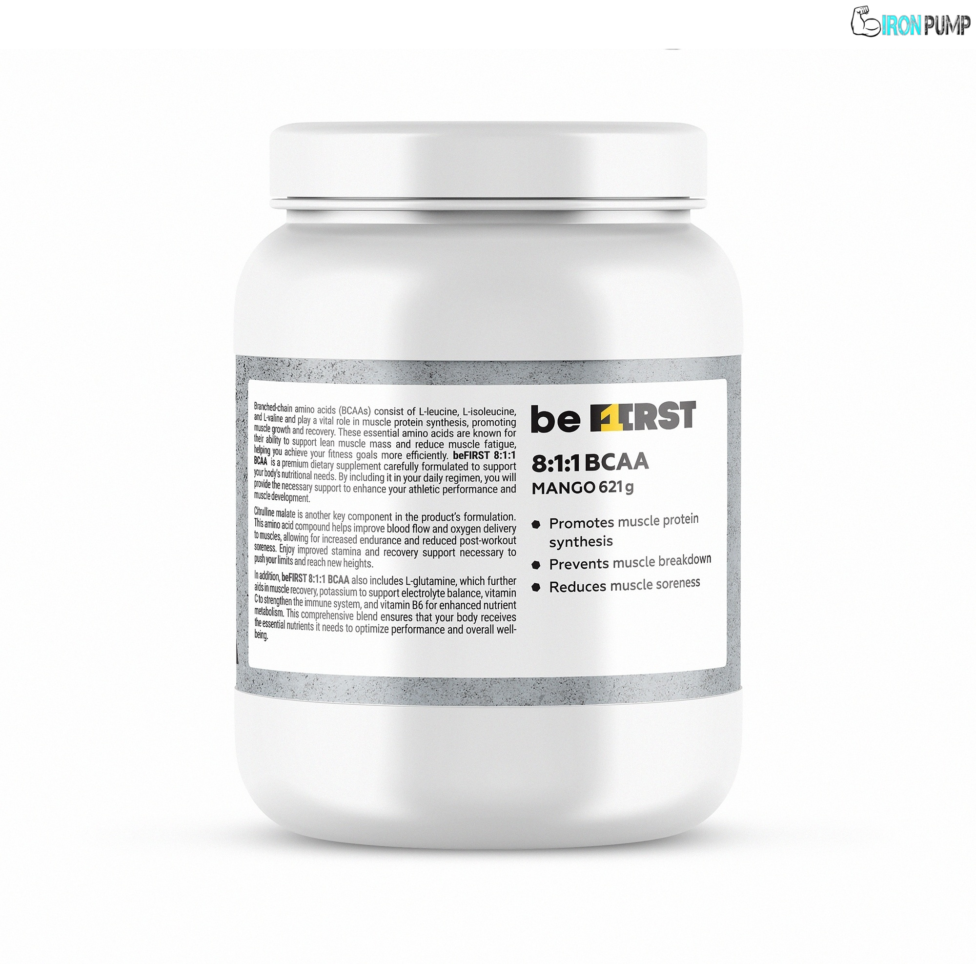 Подобрете спортните си постижения с BeFirst BCAA 620 g! Тази добавка осигурява важните разклонени аминокиселини (левцин, изолевцин и валин), които подпомагат изграждането на мускулите, намаляват умората и подобряват възстановяването след интензивни тренировки. Съотношението 2:1:1 на аминокиселините гарантира оптимална подкрепа за мускулния растеж и предпазване от разграждане на мускулната тъкан. Независимо дали тренирате силово или за издръжливост, BeFirst BCAA е отличен избор за подобряване на ефективността и поддържане на активния начин на живот.