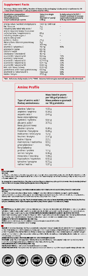IRON MASS има и друго важно предимство: всяка порция доставя до 3g диетични фибри, които регулират метаболизма ви, намаляват нивото на холестерола и подобряват функционирането на храносмилателната система, за да осигурят по-добро усвояване на всички хранителни вещества. Ако търсите продукт, който да е ваш съюзник в борбата за идеална форма и без да натоварвате храносмилателната система, IRON MASS е идеалното решение. С IRON MASS доставянето на пълноценни протеини, аминокиселини, лесно смилаеми въглехидрати и здравословни мазнини ще бъде лесно.