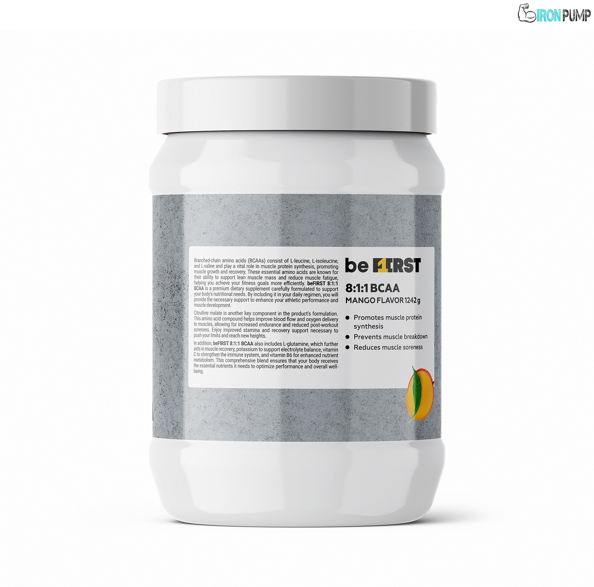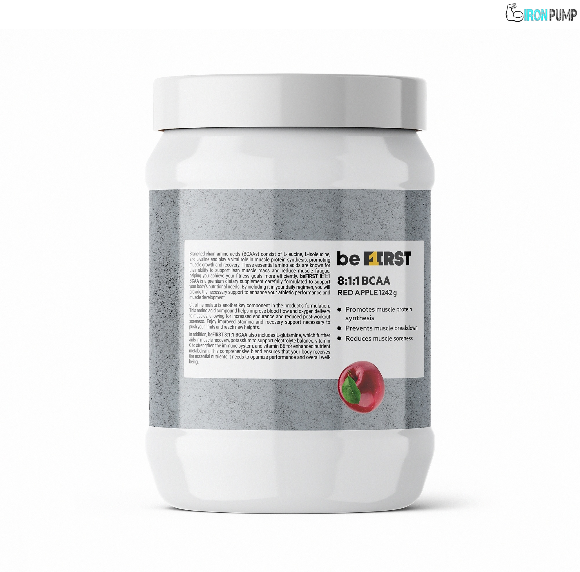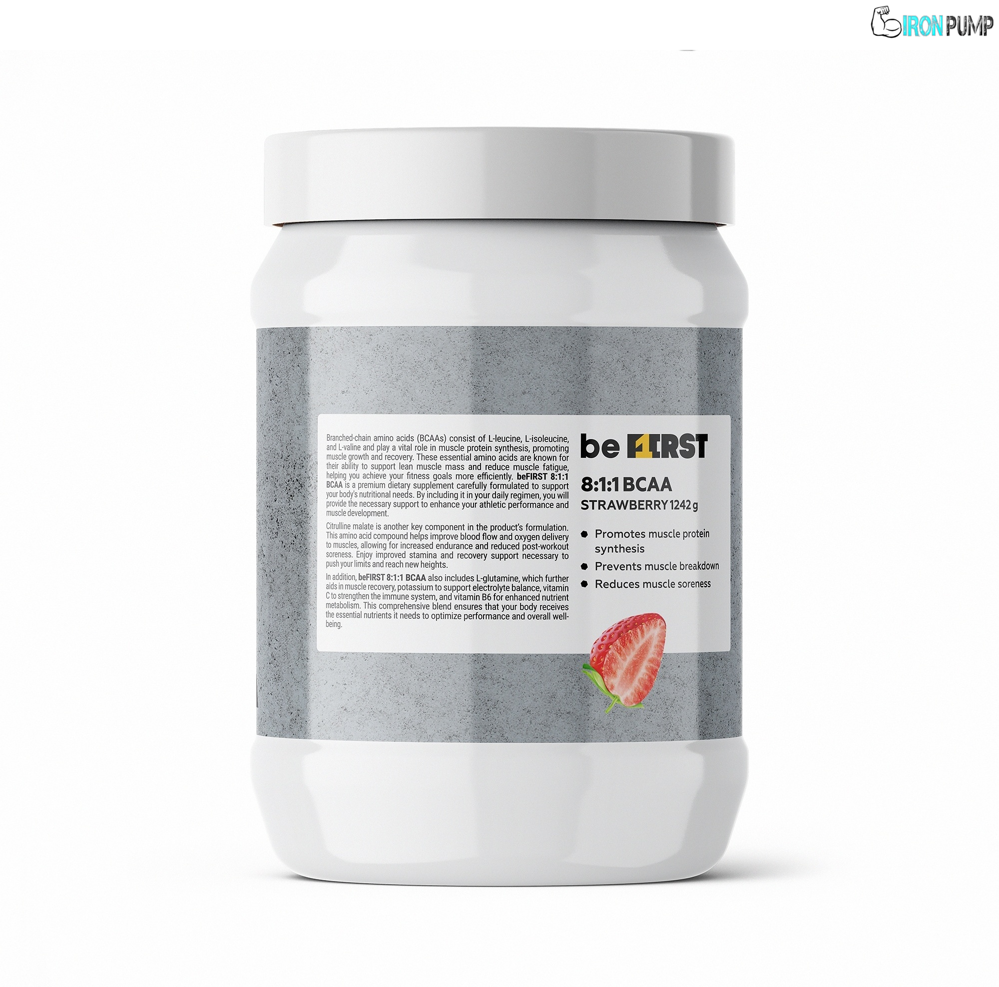 BeFirst BCAA 1240 g осигурява мощна доза незаменими аминокиселини за максимално възстановяване и мускулен растеж. Идеален за използване преди, по време на и след тренировка.
